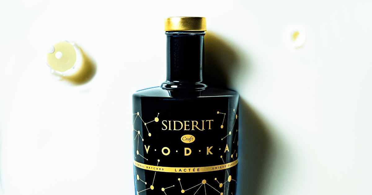 Vodka Siderit Lactée ultra Premium elaborado con gran delicadeza a partir de alcohol obtenido por la fermentación de los azúcares de la leche.