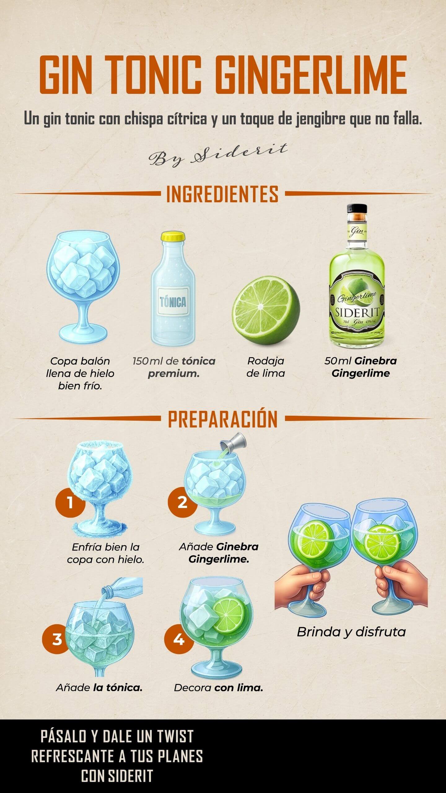 RECETA GIN TONIC GINGERLIME SIDERIT